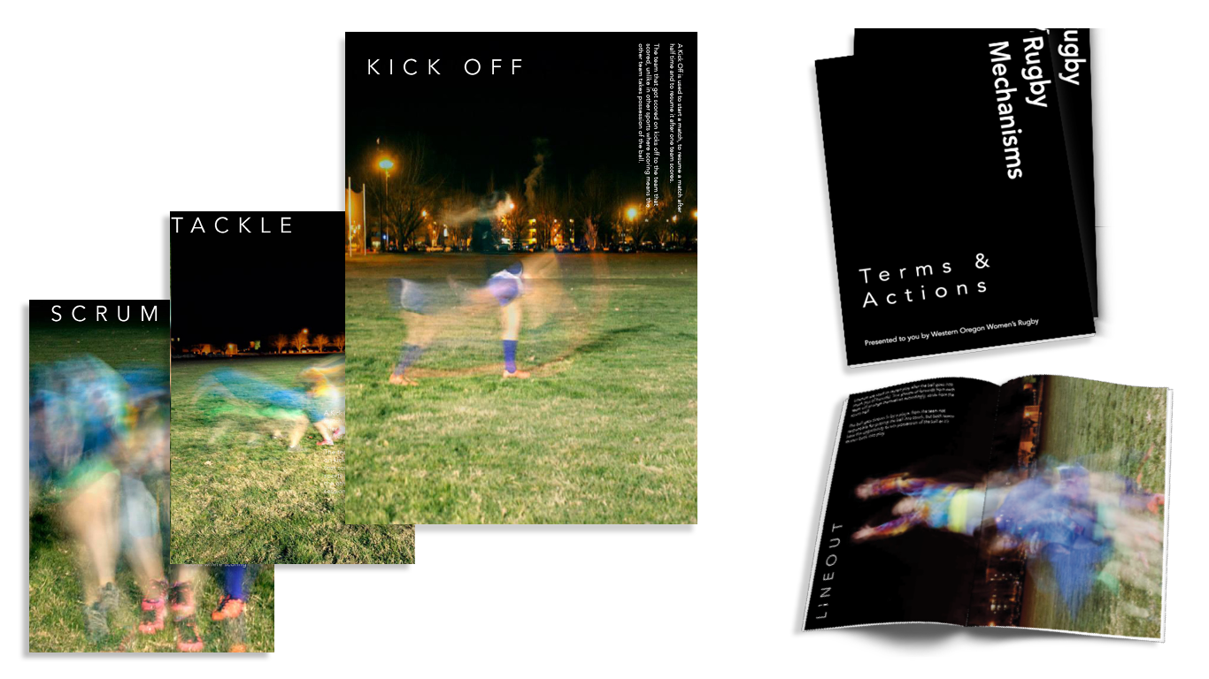 This is a printed booklet hand folded and designed by Chianti Dixon for Western Oregon University Women's Rugby Club.